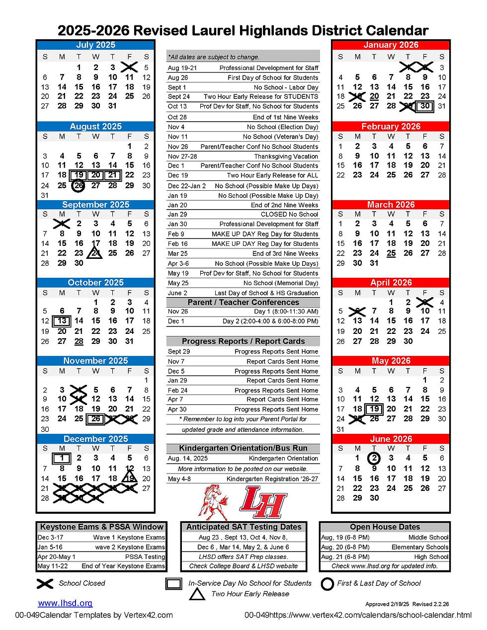 Updated 2025-2026 School Calendar